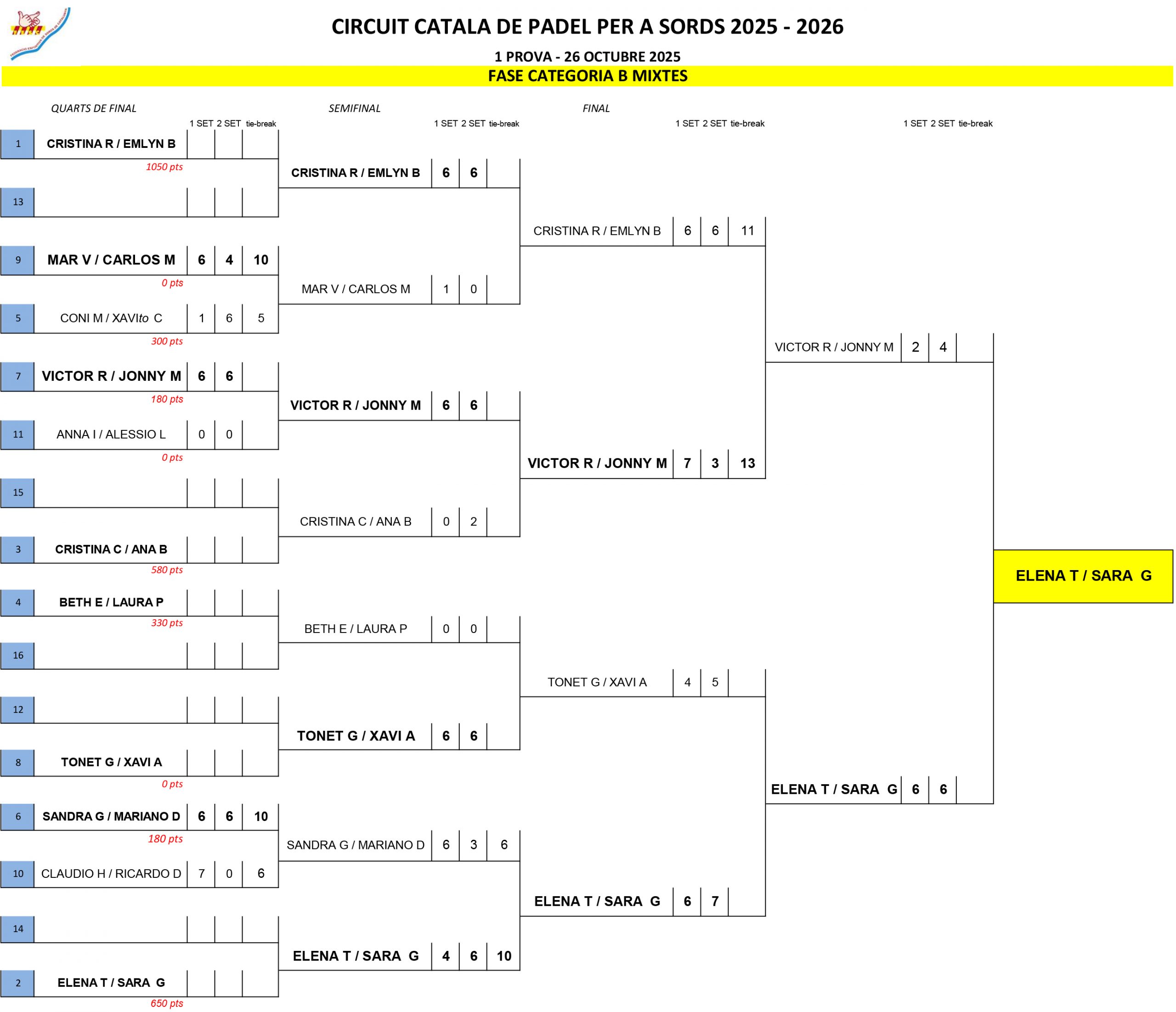 Volem agrair a tots els jugadors la seva participació i esforç, així com a l’organització i als col·laboradors que han fet possible aquest esdeveniment.