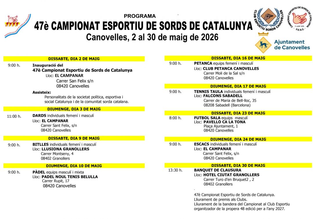 PROGRAMA DEL 47è CAMPIONTA ESPORTIU DE SORDS DE CATALUNYA