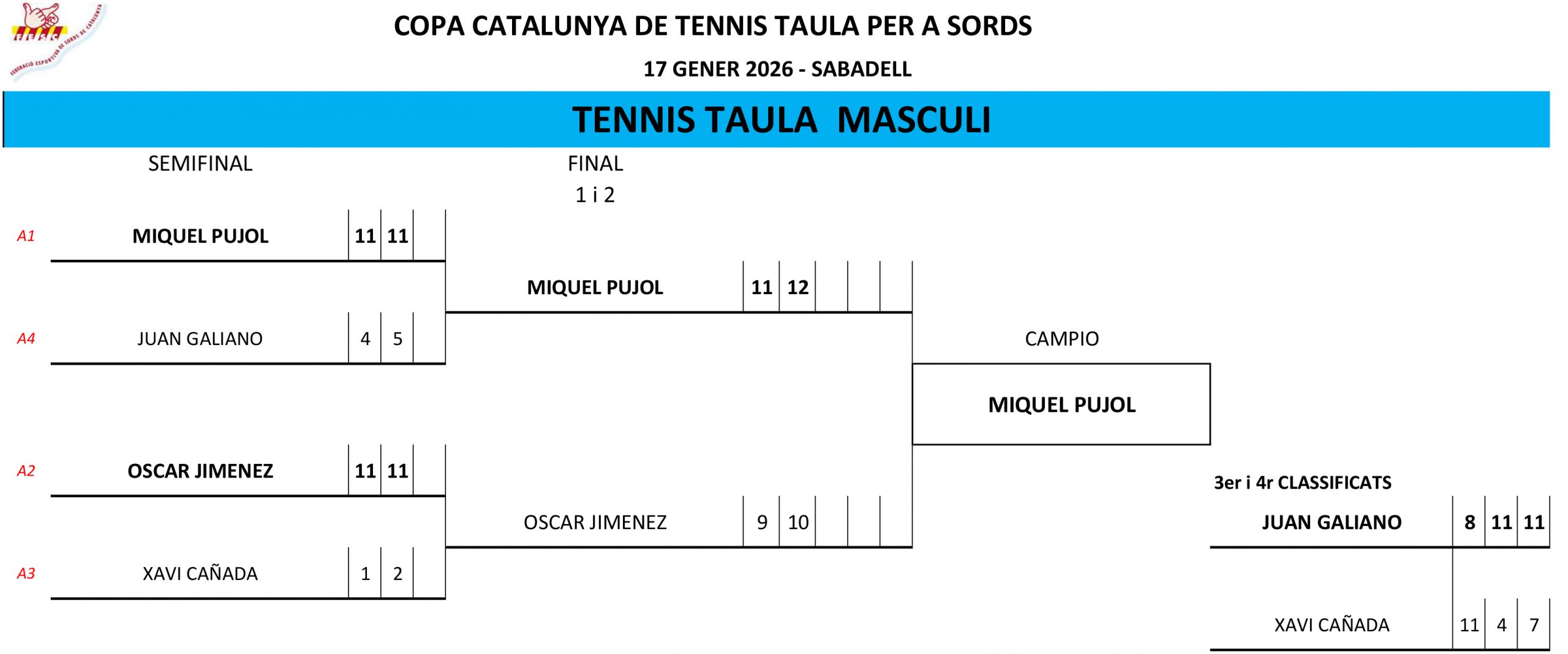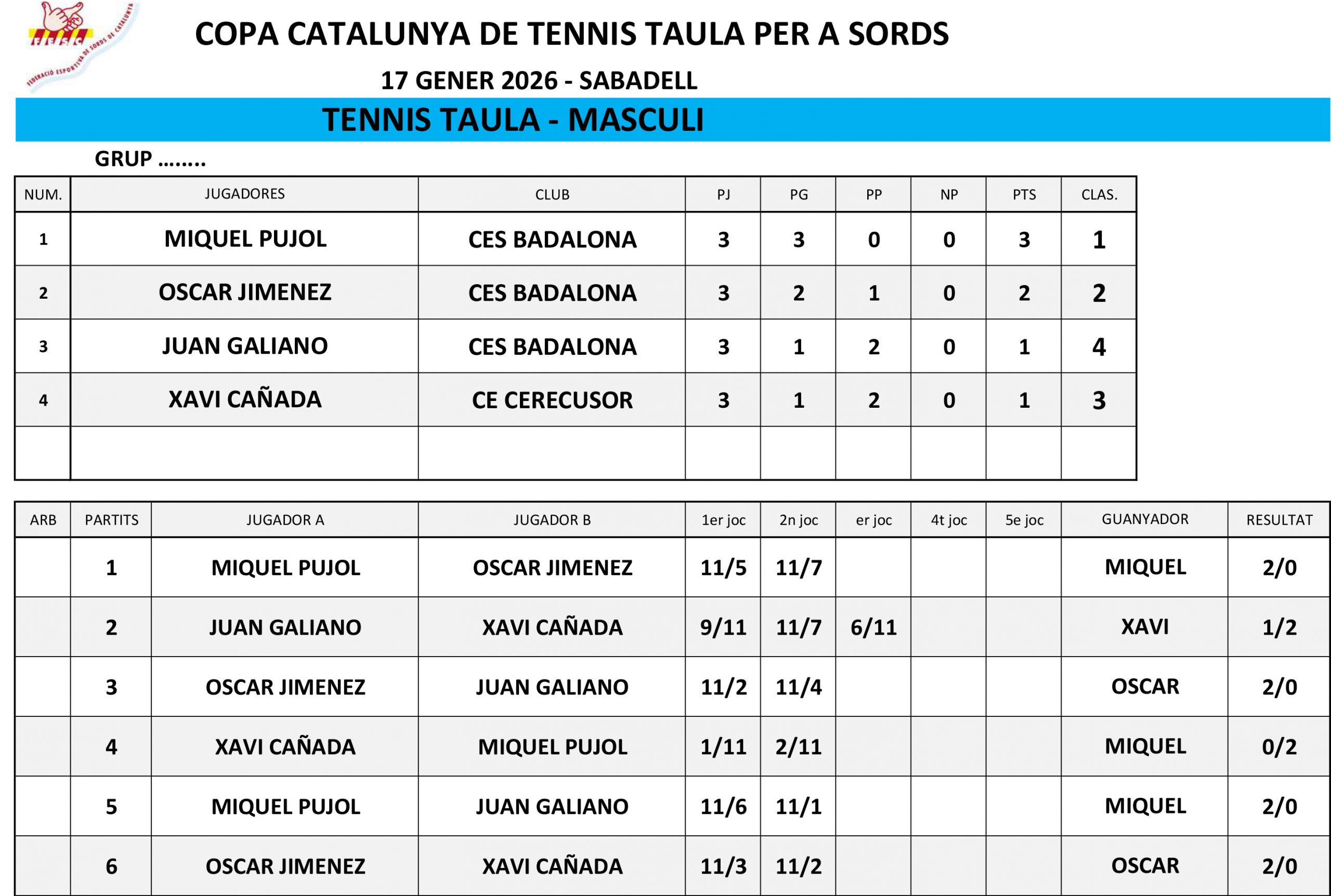 El 17 de gener de 2026, al Club Tennis Taula Falcons de Sabadell, es va celebrar la Copa Catalunya de Tennis Taula per a Sords, un esdeveniment inoblidable amb la participació de 10 jugadors.