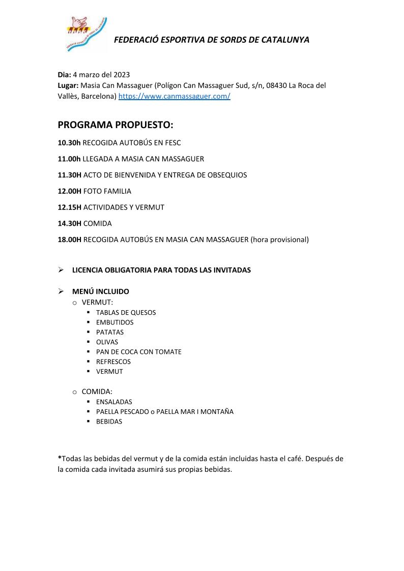 Hi haurà un servei d’autobús per a les persones que hi vulguin assistir. L’hora de tornada és ORIENTATIVA. L´hora de tornada es decidirà amb les assistents el mateix dia de l´esdeveniment. Pot ser abans o potser més tard.
