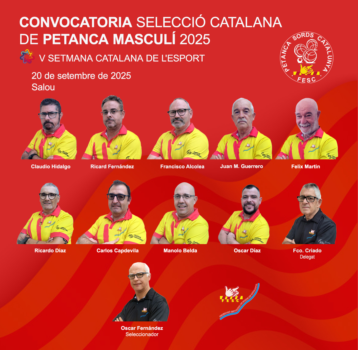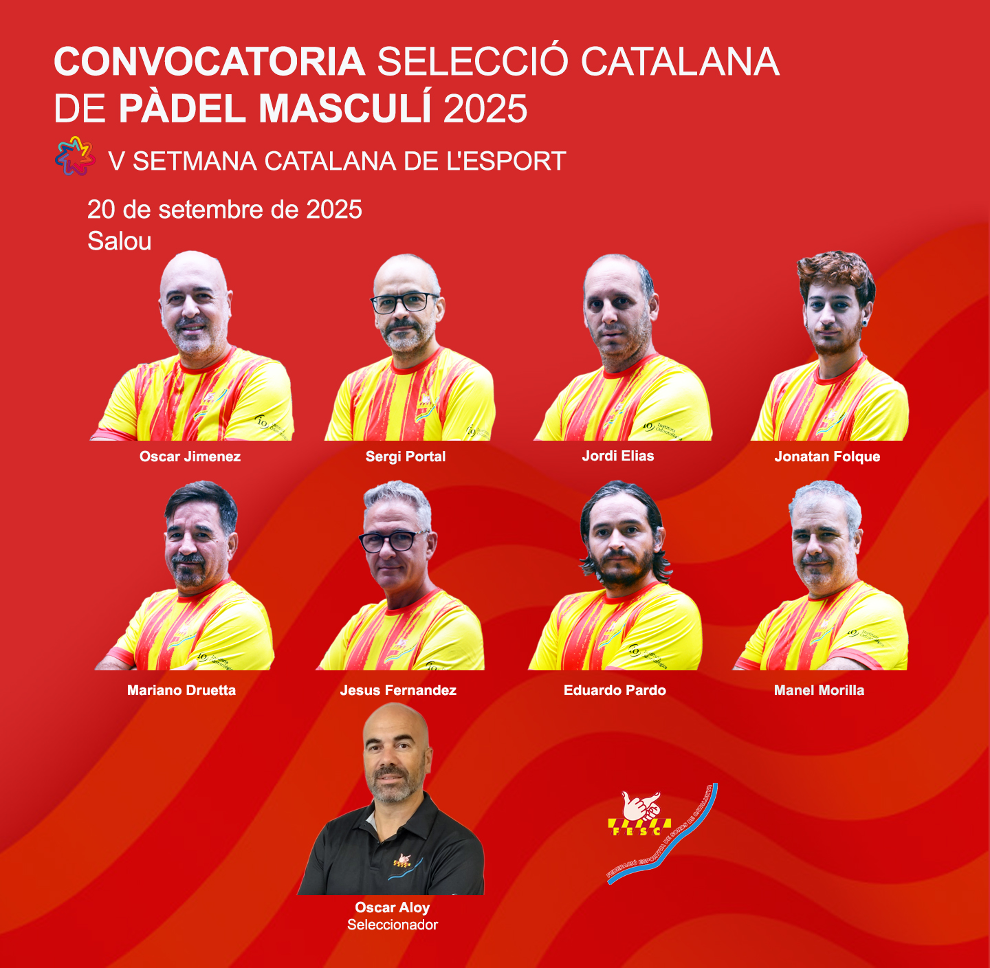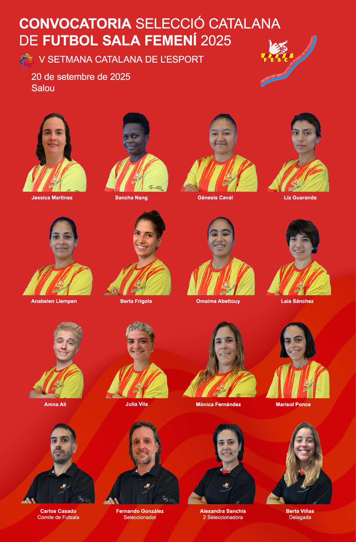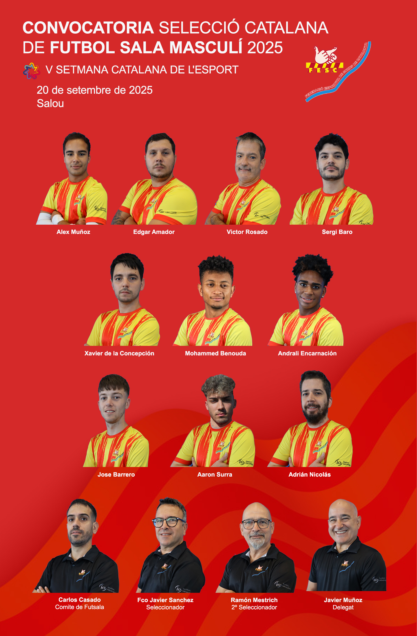 La FESC ha fet pública la llista de jugadors convocats per formar part de la Selecció catalana, que s’enfrontarà a les seleccions de Suïssa i França aquest dissabte 20 de setembre a Salou.