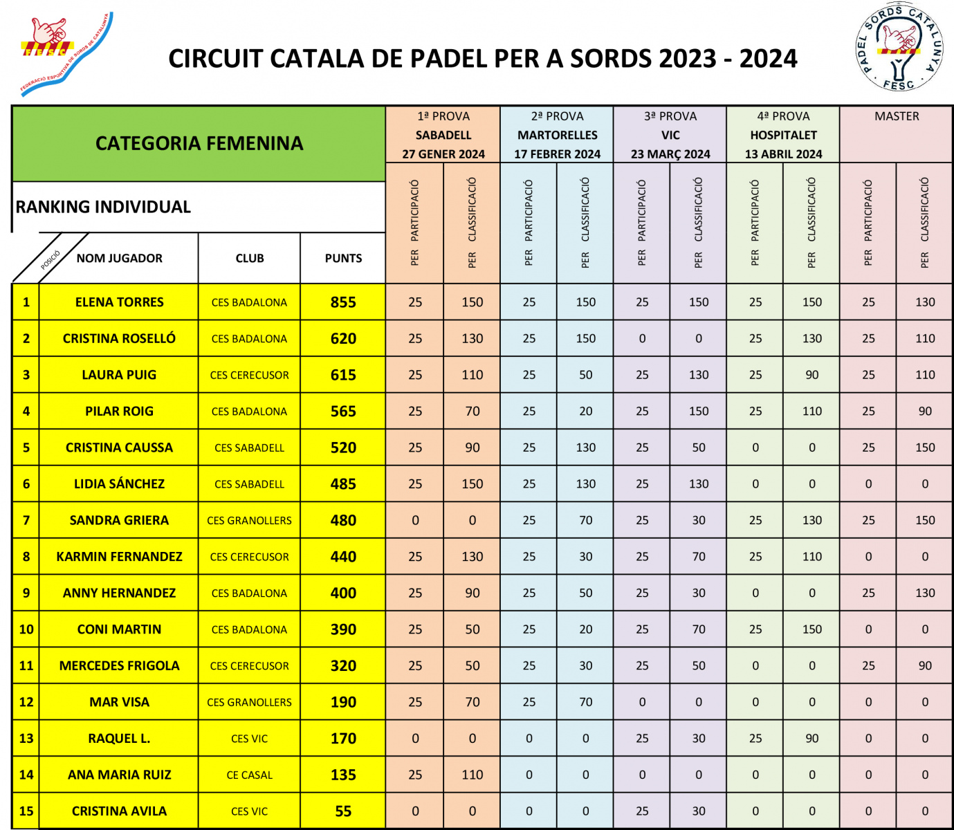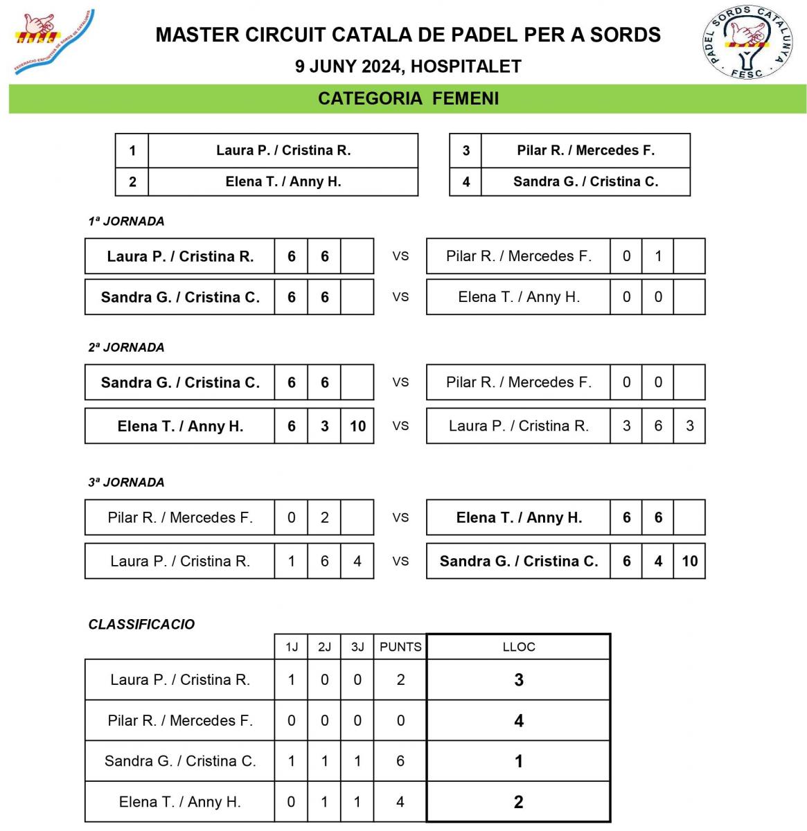 El dia 9 de juny de 2024 es va celebrar el Màster Circuit Català de Pàdel per a Sords a l’Indoor Padel Hospitalet.