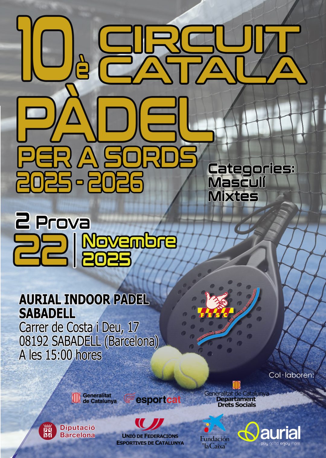 La 2a Prova del Circuit Català de Pàdel per a Sords, que se celebrarà el diumenge 22 de novembre de…