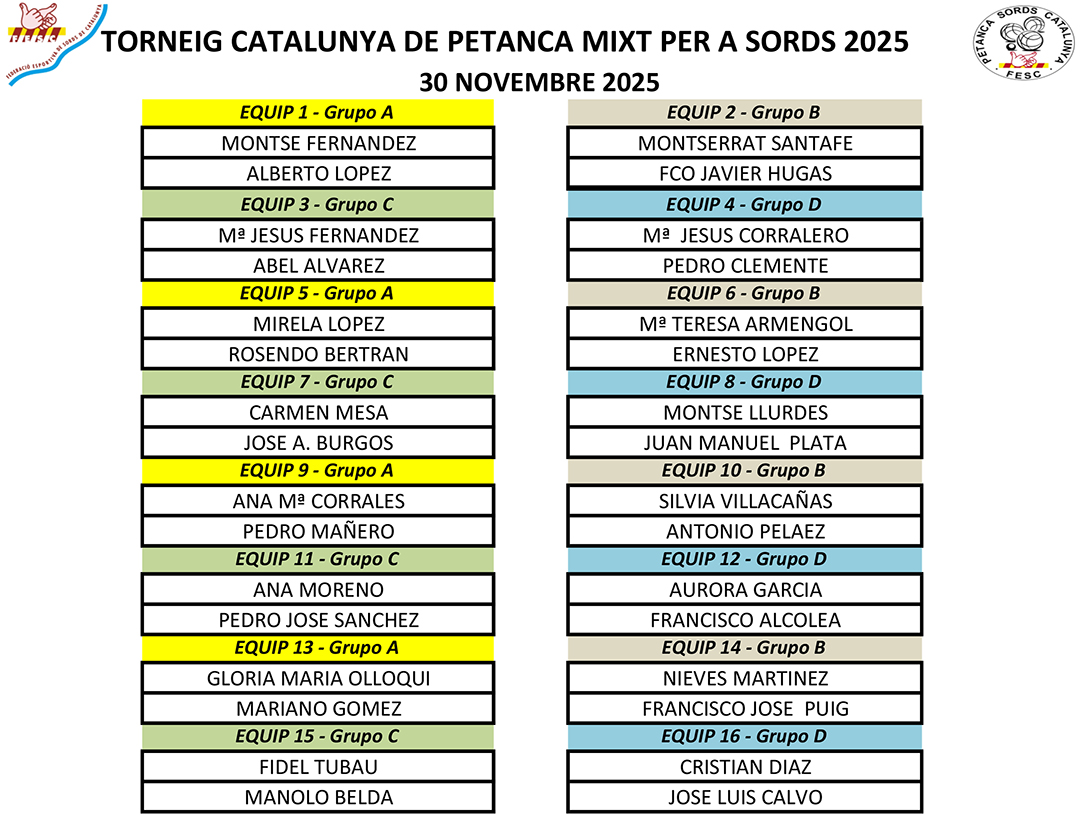 El dia 26 de novembre de 2025 es va realitzar el sorteig del Torneig Catalunya de Petanca Mixta per a Sords a la seu de la FESC.
